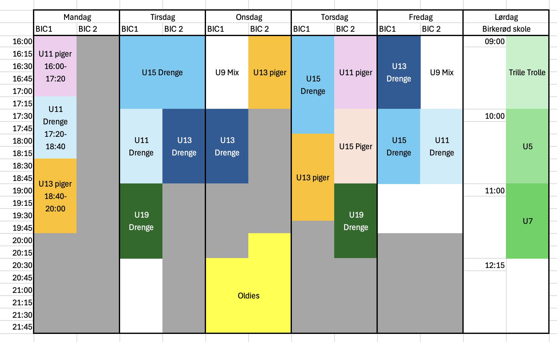 Her kan du finde træningstider i Birkerød Idrætscenter og på Birkerød Skole for sæson 2026-2027.